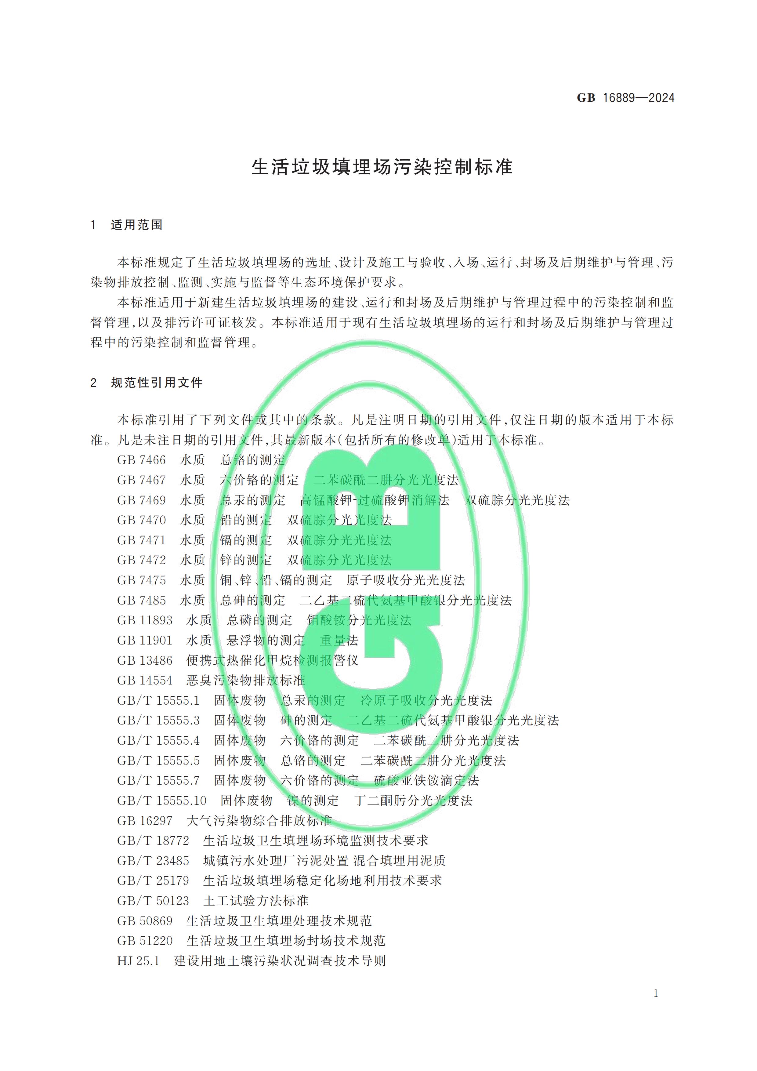 從“全國標準信息公共服務平臺”獲悉,國家標準《生活垃圾填埋場污染控制標準》(GB 16889-2024)已于2024年7月24日正式發布,新標準將替代原先的GB 16889-2008,于2024年9月1日起正式實施。以下是GB 16889-2024標準全文: