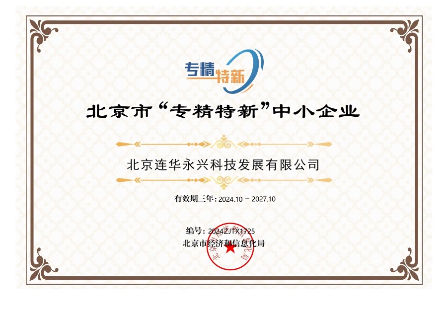 2024年10月份,北京市經(jīng)濟(jì)和信息化局發(fā)布了關(guān)于對(duì)北京市2021年度專精特新中小企業(yè)到期復(fù)核通過的企業(yè)名單進(jìn)行公告的通知,連華科技榜上有名,再次榮獲《北京市“專精特新”中小企業(yè)》榮譽(yù)稱號(hào)。