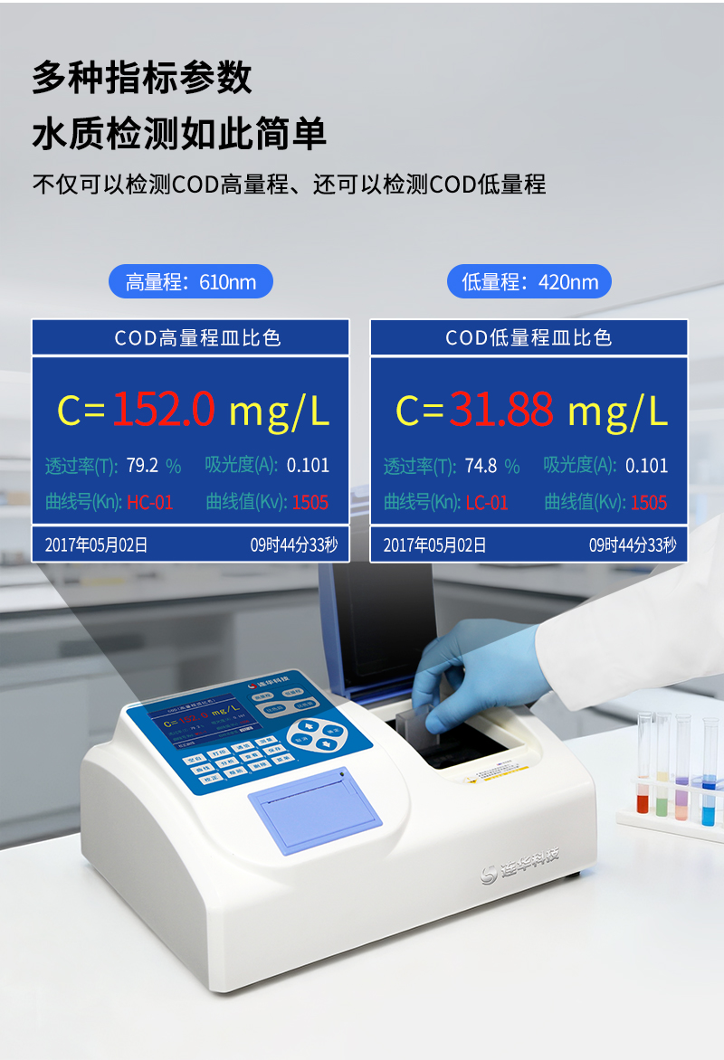 簡要描述: 儀器依據(jù)《水質(zhì)化學(xué)需氧量的測定快速消解分光光度法(HJ/T399-2007)》標(biāo)準(zhǔn)設(shè)計,采用雙光路無干涉系統(tǒng),可以測定COD高量程、COD低量程水樣,同時支持皿比色與管比色兩種比色方式,便于用戶選擇合適的耗材進(jìn)行實驗,具有極高的便利性和性價比。