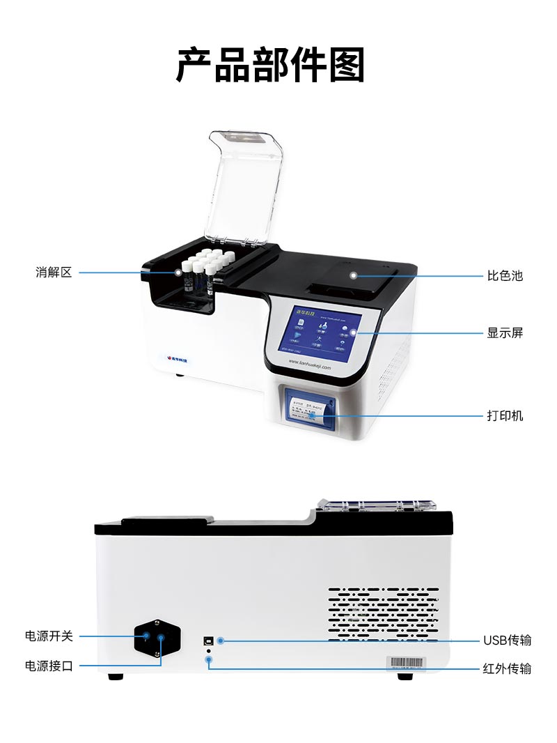 3.自帶消解器:儀器自帶消解器,具有智能升溫、智能定時和延時保護等功能,可對水樣進行消解;